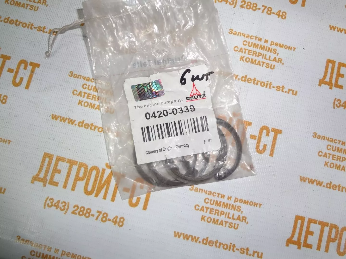 В каталоге компании «Детройт-СТ» представлены надежные запчасти с высоким качеством и отличными эксплуатационными характеристиками. Их надежность проверена нашими специалистами при ремонте и обслуживании двигателей. Мы уверенно предоставляем гарантию на все поставляемые элементы и запасные части сроком на 1 год или 2000 моточасов! В "Детройт-СТ" вы можете приобрести запчасть "Кольцо стопорное поршневого пальца Deutz 04200339 (4200339, 0420-0339)" напрямую от производителя по низким ценам. Для этого вам нужно оставить заявку на сайте или позвонить нам по номеру 8 (800) 500-94-24
