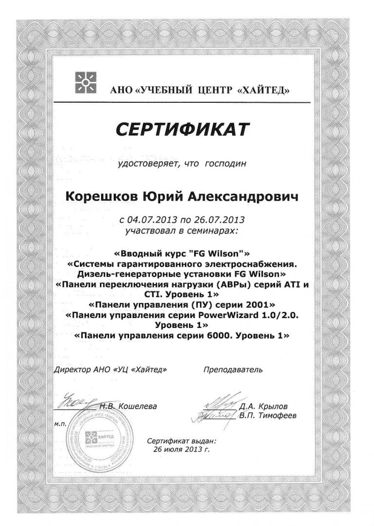 Сертификаты по ремонту двигателей